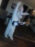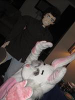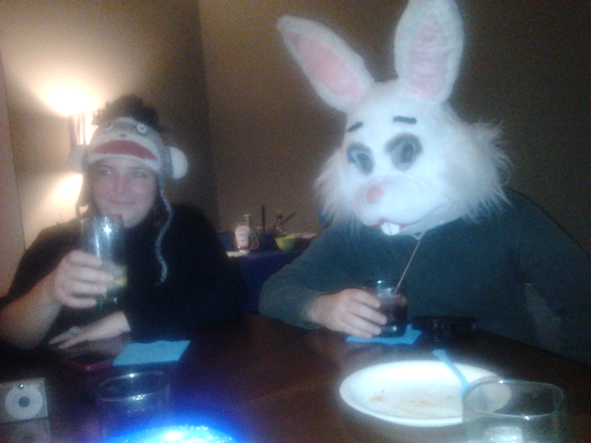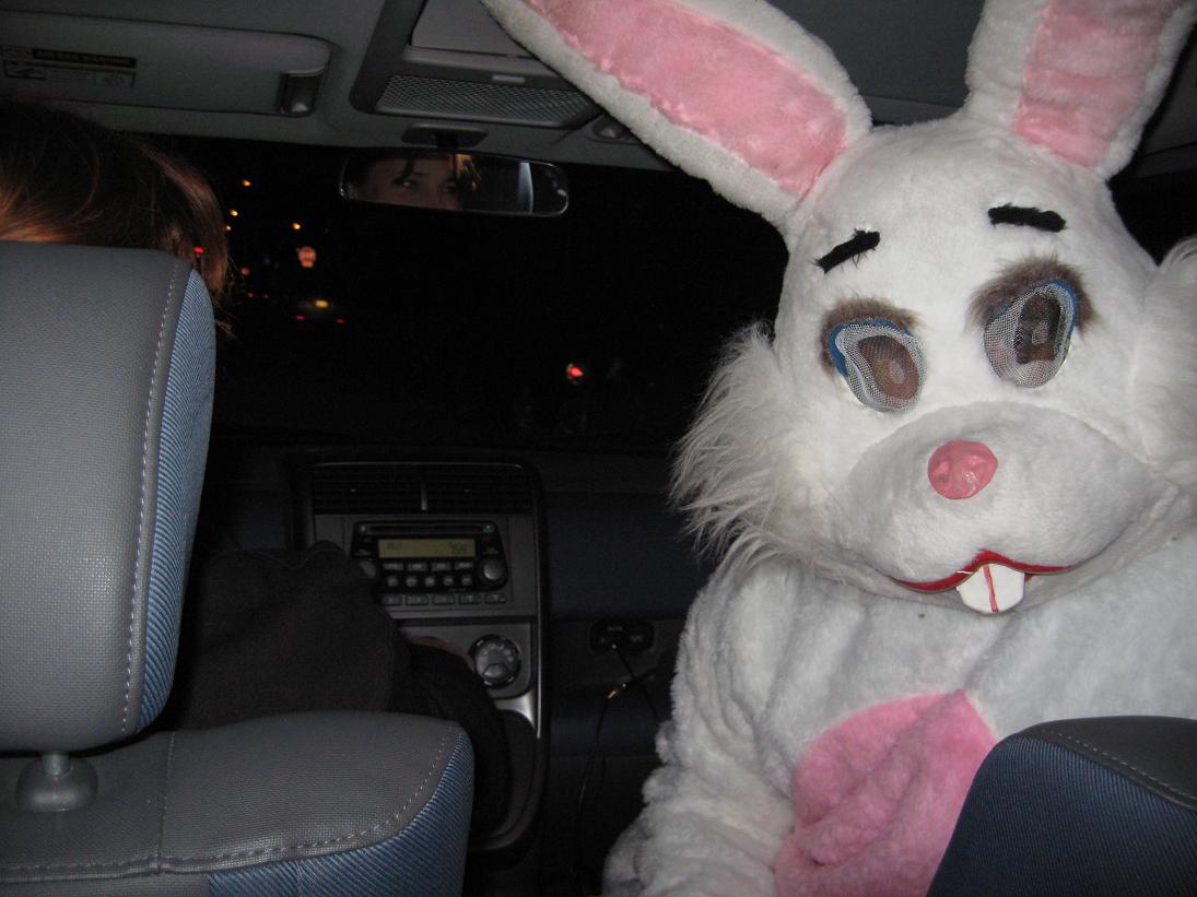 Anyway, when we got to Lynn’s house we were amazed to discover him stood in the street wearing a Giant Bunny costume… ‘err OK’ we thought (after 5 mins of hysterics) and so we bundled him into the car and set off to our destination, all the way with him sticking his bunny head out of the window bawling ‘Happy New Year’ to one and all!