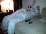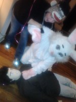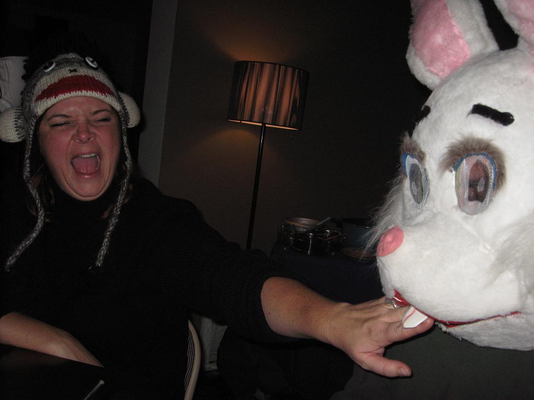 After a couple of hours, we came up with the brilliant idea of playing party games, namely ‘Taboo’ …however we didn’t have a one. So giant rabbit went over to a neighbours, with a threatening note pinned to his chest and stood outside their front door until they gave us theirs! Which miraculously worked (he was a spooky looking rabbit!)